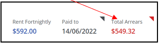 Click on the arrow to the right-hand corner will open a screen to show the breakdown of rent and invoice arrears. Remember, this is arrears only, so if there are invoices pending which are not yet overdue, you may also need to check the financials tab > outstanding invoices under the tenant profile.