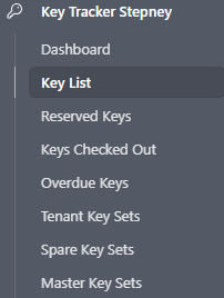 Step 1: Open the Key Tracker Key List page. Search via property address or key number.